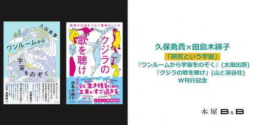 5/8 (月)19:00 - 21:00 久保勇貴×田島木綿子「研究という宇宙」『ワンルームから宇宙をのぞく』(太田出版)『クジラの歌を聴け」(山と渓谷社)W刊行記念 本屋B&B https://bb230508a.peatix.com/ ワンルームから宇宙をのぞく 作者:久保 勇貴 太田出版 Amazo…