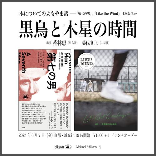 6月7日(金)19時〜 若林恵 藤代きよ 黒鳥と木星の時間 本についてのよもやま話『第七の男』、『Like the Wind』日本版ほか 25名 1500円+1ドリンクオーダー 京都・誠光社 https://www.seikosha-books.com/event/9922 第七の男 作者:ジョン・バージャー 黒鳥…