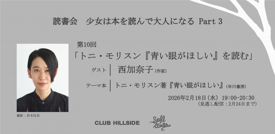 2/18 (水)19:00 - 20:30 西加奈子「トニ・モリスン『青い眼がほしい』を読む」【読書会 少女は本を読んで大人になる Part3】第10回 By CLUB HILLSIDE https://20260218chs.peatix.com/event/4806367/view/