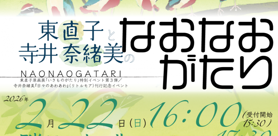 2026-01-29 「なおなおがたり」 2/22 (日)16:00 - 18:00 東直⼦×寺井奈緒美「なおなおがたり」【東直⼦原画展「いきものがたり」特別イベント第3弾/寺井奈緒美『⽇々のあわあわ』(リトルモア)刊⾏記念イベント】隣町珈琲 https://peatix.com/event/4826453/view 日々のあわあわ 作者:寺井 奈緒美 リトルモア Amazon