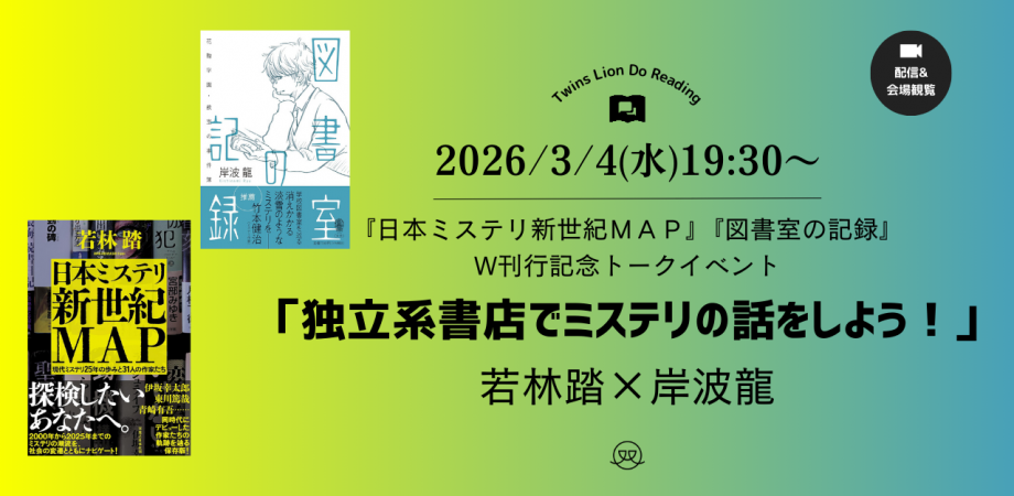 2026-02-18 「独立系書店でミステリの話をしよう!」 3/4(水)19:30〜『日本ミステリ新世紀MAP』『図書室の記録』W刊行記念トークイベント「独立系書店でミステリの話をしよう!」ゲスト:若林踏×岸波龍 双子のライオン堂 https://peatix.com/event/4880389/view 図書室の記録 作者:岸波 龍 而立書房 Amazon 日本ミステリ新世紀MAP 現代ミステリ25年の歩みと31人の作家たち 作者:若林 踏 実業之日本社 Amazon