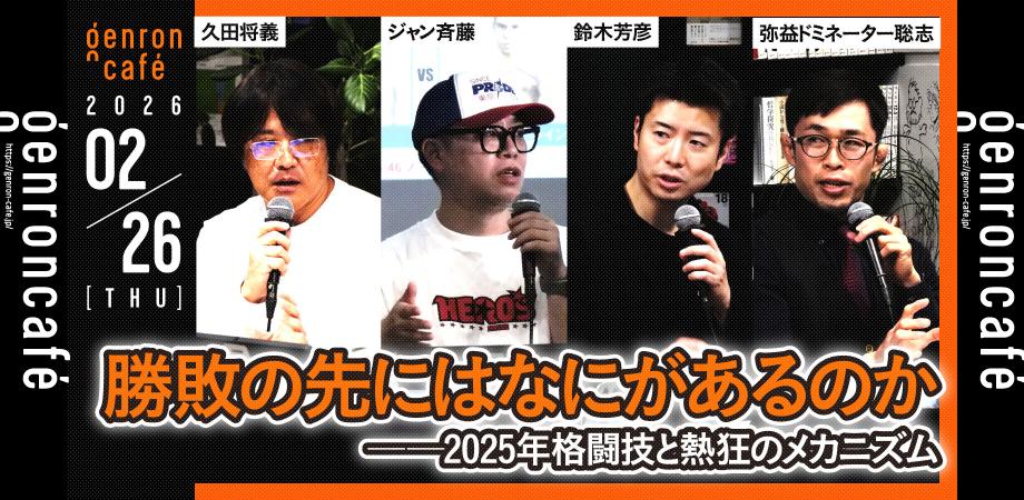 2/26(木)19:30 - 22:00 弥益ドミネーター聡志×鈴木芳彦×久田将義×ジャン斉藤 勝敗の先にはなにがあるのか──2025年格闘技と熱狂のメカニズム 五反田ゲンロンカフェ https://peatix.com/event/4880660/view